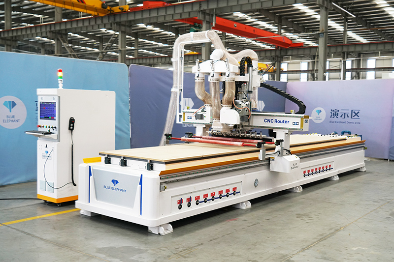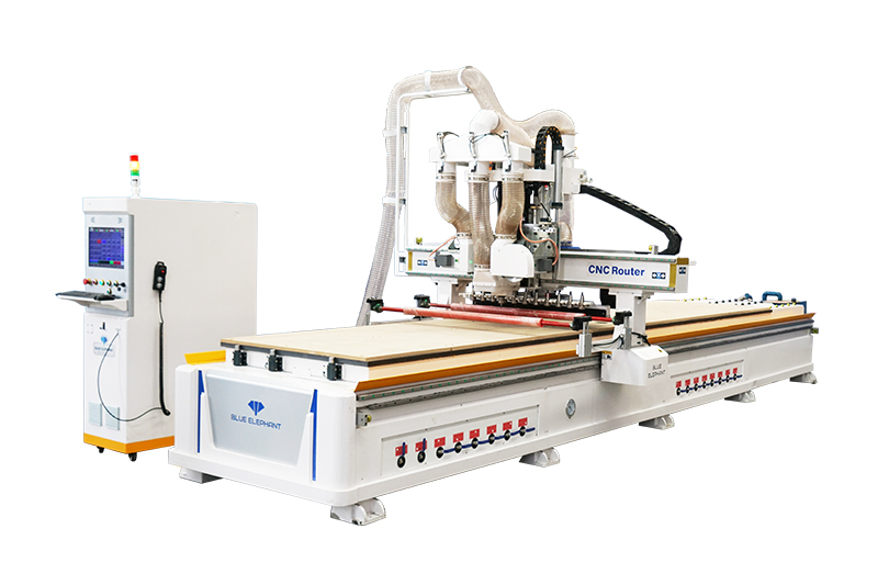 機器采用12把直排自動換刀,9kw風冷主軸搭配5.5kw鋸片主軸,加工精度高,加工板材光滑整潔無毛刺。